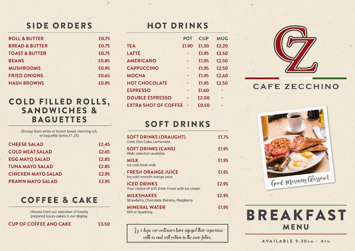So, whether you're a local or just passing through Glasgow, make sure to drop by Cafe Zecchino. Treat yourself to a meal that feels like a warm hug, and leave with not just a satisfied appetite but also a smile, knowing you’ve discovered one of Glasgow's hidden gems.